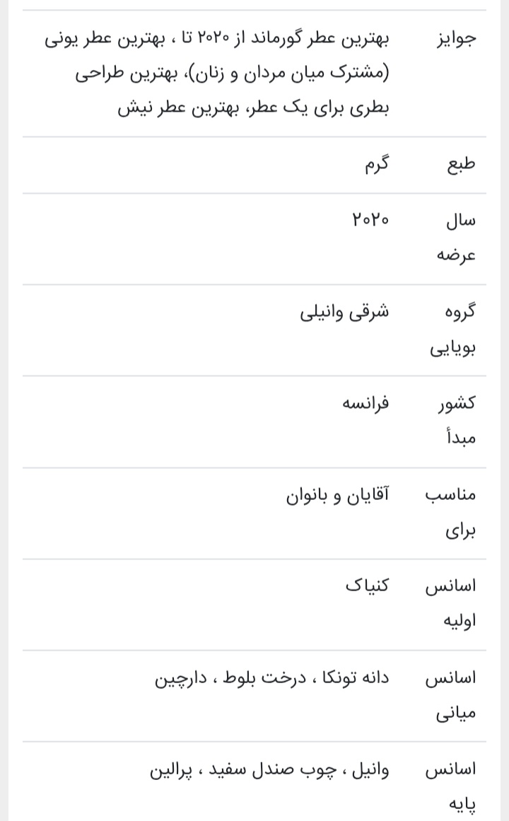 این عطر را در انداره های مختلف و در چند نوع غلظت برای شما فراهم کرده ایم / توجه داشته بشید ادوکلن کمترین مقدار اسانس ولی بخش بوی خوب و پرفیوم بیشترین اسانس و ماندگاری را دارند سایز ۳۰ میل / ۵۰ میل / ۱۰۰/میل/در غلظت های پارفام/ ادو پارفام/ ادوکلن