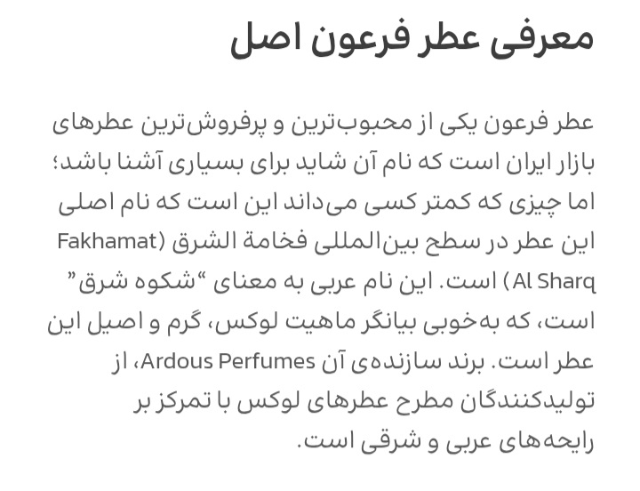 سرد . تند . تلخ . با شکوه مثل خود فرعون / به هر کجا بروید توجه ها جلب میشود ماندگاری بالا خط بو چندین متری / پخش بوی عالی